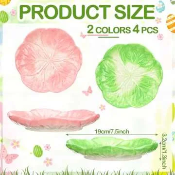 Introducing the Jinei 4 Pcs Bunny Plates Ceramic Easter Dishes, a delightful addition to your spring tableware collection! Perfectly sized at approximately 7.5 inches, this set of four ceramic plates is designed to enhance your dining experience, whether you're serving sumptuous desserts or light meals. Crafted with a beautiful original Easter theme, each plate features intricate cabbage motifs in refreshing hues of pink and green, bringing a charming and joyful atmosphere...