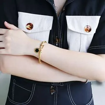 Show moreDiscover the timeless elegance of the JINHUI Cable Wire Cuff Bracelet, expertly crafted for women who appreciate style and durability. This exquisite bangle features a twisted cable design made from high-quality 316L stainless steel, ensuring a remarkable strength and resilience that stands the test of everyday wear. The bracelet seamlessly merges modern aesthetics with classic charm, highlighted by a stunning roman numeral black disc charm that adds a touch of sophistication. With a size that fits comfortably on a 6.3-inch wrist, this piece is designed to be an essential component of your jewelry collection.