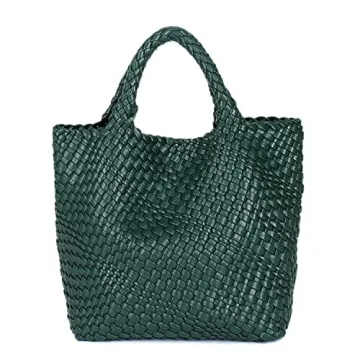 JINMANXUE Fashion Woven Bag Shopper Bag Travel Handbags and Purses Women Tote Bag Large Capacity Shoulder Bags(Dark green)