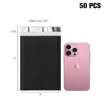 Show more Introducing the perfect solution for all your shipping needs, the Black Bubble Mailer 4x8. These padded envelopes, featuring an outer dimension of 4x8 inches and an inner size of 4x7 inches, are ideal for transporting a variety of items like cosmetics, jewelry, handmade crafts, and electronic accessories. Designed with versatility in mind, this product provides an economical way to safely ship your packages.