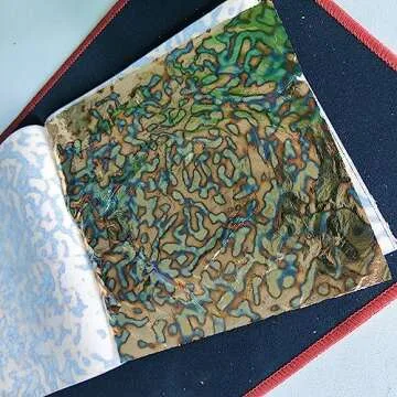 Show more Transform your artistic endeavors with our stunning Variegated Metal Leaf Sheets, a must-have for anyone who loves to craft or design! Measuring 5.51” x 5.51” (14 x 14 cm), each booklet contains 50 sheets of loose leaf that are sure to inspire your imagination. Unlike traditional metal leaves, these sheets have been specially treated to develop unique colorations that are absent in standard metals, offering a rich palette of shades and patterns.