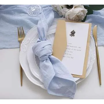 JINVASE Dinner Cloth Napkins Bulk,100% Soft Cotton Linen Napkins,Washable Napkins with Hemmed Edges for Weddings Decorations,Family Event Parties,16”*16”,(Set of 12, Pale Blue)