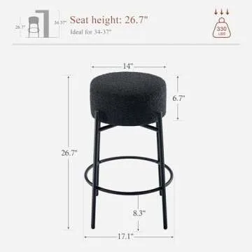 JIRAIN Modern Backless Bar Stools Set of 2, 27’’ Boucle Swivel Barstools with Round Padded Seat, Counter Stools with Metal Legs, Counter Height Stools for Kitchen Island, Black