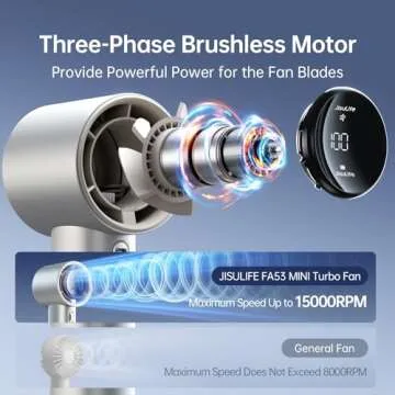 Show more The Handheld Fan Pro1 S is a revolutionary portable cooling device that blends innovative technology with sleek design to deliver an unparalleled cooling experience. Featuring a three-phase brushless motor coupled with a powerful 5000mAh battery, this fan achieves magnificent wind speeds of up to 9m/s, making it significantly more powerful than traditional handheld fans. With a peak rotation speed of 15000 RPM, it ensures that you feel a refreshing breeze even on the hottest days, providing cooling relief for up to 15 hours on a single charge.