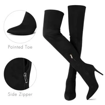 Jiu du Black Thigh High Boots Pointed Toe Suede Black High Heel Boots Women's Over The Knee High Boots Size 8.5