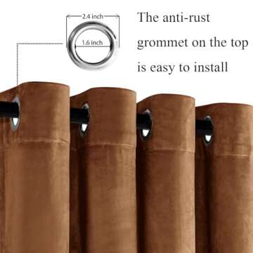 Show moreElevate your home decor with the exquisite JIUZHEN Gold Brown Velvet Curtains. Crafted with a sumptuous velvet fabric, these curtains not only add a touch of luxury to your living space but are also highly functional. Each package includes two panels, measuring 52W x 96L inches each. The included tiebacks conveniently secure the drapes while allowing light to filter in during the day. With an inner diameter of 1.6 inches for the grommets, they fit most curtain rods effortlessly.