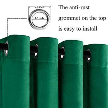 JIUZHEN Green Velvet Curtains 108 inches - Super Soft Retro Blackout Velvet Drapes Room Darkening Window Drapes for Living Room/Dining Room, W52 x L108 inches, 2 Panels