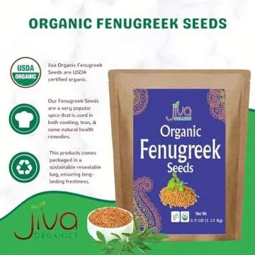 Jiva Organic Fenugreek Seeds 2.5 LB Bulk - As Seen On Tik Tok - Whole Methi Seeds - Non GMO, Non-Irradiated, Gluten Free - (Fenogreco En Semillas)
