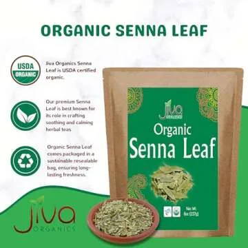 Show moreEmbrace natural wellness with Jiva Organics Organic Senna Leaf Tea, an exceptional 8-ounce bulk bag featuring cut & sifted leaves of Senna Alexandrina. Renowned for its potent laxative properties, this certified USDA Organic tea is the ideal companion for anyone seeking reliable digestive support. Sourced directly from organic farms in India, our senna leaves are carefully cultivated without the use of pesticides, chemicals, or fertilizers, ensuring maximum quality and effectiveness in every sip. The tea comes in a resealable Kraft bag for easy storage and usage, giving you the convenience to brew this herbal remedy whenever needed!