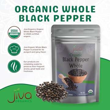 Why You Will Love This Product: Picture this: each meal you prepare infused with the rich, aromatic flavor of freshly ground black pepper. It's not just a spice; it's a lifestyle choice, enhancing your cooking while supporting a noble cause. With Jiva Organics Whole Black Peppercorns, each purchase contributes to feeding a child in need. You're not only elevating your dishes but creating a ripple effect of goodness!
