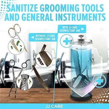JJ CARE Disinfectant Jar – 35oz Barber Jar, Stainless Steel Strainer, Silver Lid