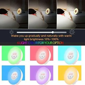 Show more Start your day on a soothing note with the JJcall 2017 Newest Version Wake Up Light Alarm Clock, expertly crafted for those who value tranquility as they wake. This innovative clock is not just a timepiece; it’s a multifunctional device that integrates a wake-up light, nature night light, FM radio, and more. With its sleek design and intuitive touch control, this alarm clock is perfect for any bedroom aesthetic, providing an ideal ambiance for both waking up and winding down. Choose from 7 vibrant colors to brighten your mornings or create a calming atmosphere at night, ensuring a refreshing start every day.