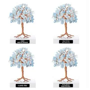 JJovivi Personalized Custom Mini Natural Aquamarine Healing Crystals Bonsai Copper Money Tree on Marble Base for Home Decor, Good Luck, Wealth