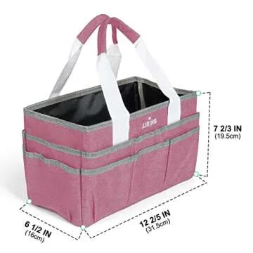 JJRING Craft Organizer Tote Bag, Art Storage Caddy with Multiple Pockets, Pink Sewing Bag for Art, Craft, Scrapbooking, School, Medical, and Office Supplies Storage