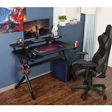Designed with the modern user in mind, this desk features a variety of convenient accessories that enhance usability and organization. Included are a removable monitor stand to promote better posture, a handy cup holder to keep beverages within reach, a headphone hook to declutter your space, and a large, FREE mouse pad to ensure a seamless gaming experience. Its sleek and stylish aesthetics make it a perfect fit for both a gaming setup and a professional workstation.