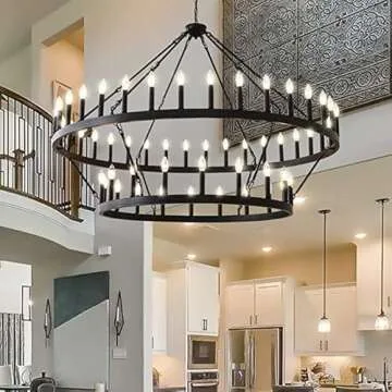JKLX 60 Inch Large Black Wagon Wheel Chandelier,2 Tier 54-Lights Farmhouse Industrial Country Style Round Pendant Light Fixture for Dining Room Kitche