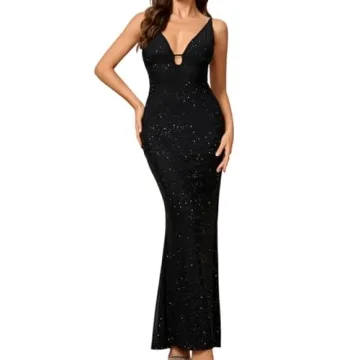 Show moreStep into the spotlight with the stunning JKMNAO Women's Sexy V Neck Sequin Bodycon Maxi Dress, designed for those who dare to dazzle. This dress is a perfect blend of comfort and style, tailored from a high-quality fabric mix of 95% polyamide and 5% elastane, creating a breathable and stretchy garment that captures elegance effortlessly. The eye-catching design features a luxurious two-layer composition, adorned with bright sequins that catch the light beautifully, making it the heart of any party. With its deep V neck and sultry backless cut, this dress not only showcases your silhouette but also highlights your confidence and charisma.