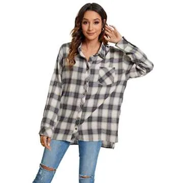 Show moreDiscover ultimate comfort and style with the JLCNCUE Women's Classic Long Sleeve Flannel Plaid Shirt. This oversized tops blouse is perfect for layering or as a standalone piece in your wardrobe. Crafted from a high-quality blend of 80% Cotton and 20% Polyester, this shirt offers a soft, lightweight, and breathable fabric that is gentle on the skin, providing all-day wearability. Ideal for any season, the boyfriend-style cut ensures a relaxed fit without compromising on fashion, allowing you to transition smoothly from day to night.