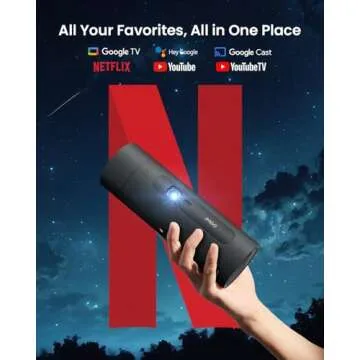 JMGO PicoFlix GTV Netflix Projector, 1080P Mini Portable Projector with Wifi and Bluetooth, 4.5H Battery, Outdoor 3D Movie Projector 150", Gimbal Auto Image Correction, 420 ISO Lumens, HDR10, 10W DD+