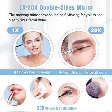 The mirror features an innovative double-sided design with 1x and 20x magnification options. While the 1x side gives you a full view of your face, the 20x magnification zooms in on the details, bringing imperfections into clear focus. Say goodbye to second-guessing your makeup choices; this mirror provides accuracy that ordinary mirrors simply cannot.