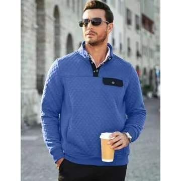 JMIERR Men's Fall Quilted Sweatshirt Casual Long Sleeve Outdoor Crew Neck Button Pullover Sweaters Lightweight Sweatshirts with Pockets, US 40(M), Sky Blue