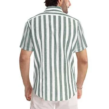 JMIERR Men's Summer Casual Stylish Short Sleeve Button-Down Shirts Cotton Linen Striped Business Dress Shirts Beach Shirt, S, Gray and White Stripe