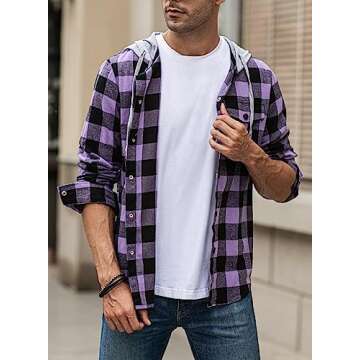 JMIERR Mens Casual Long Sleeve Button Down Hooded Flannel Shirts for Men Lightweight Drawstring Hooded Jackets Shirt