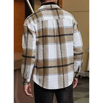 JMIERR Mens Flannel Jackets for Men Casual Button Down Long Sleeve Plaid Shirt Lightweight Shackets with Pockets,US 40(M),Brown
