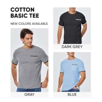 Show moreIntroducing the JMIERR Men's T-Shirt 3 Pack, the ultimate essential for the modern man looking to blend comfort, style, and functionality seamlessly. Each tee is expertly crafted from a premium cotton blend, ensuring a soft and breathable fabric that feels fantastic against the skin. Enriched with polyester and a touch of elastane, this collection boasts moisture-wicking properties that help keep you cool and dry, whether you’re hitting the gym, lounging, or stepping out for a casual day out. The crewneck design offers a classic silhouette perfect for all body types, while the inclusion of a small chest pocket not only adds a stylish touch but also provides practical use for carrying essentials. With versatile colors of dark grey, light grey, and light blue available, you’re sure to find the perfect match for every outfit!