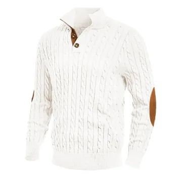Show moreIntroducing a must-have addition to any man’s wardrobe—a stylish and versatile long sleeve pullover sweater that effortlessly combines comfort and fashion. Crafted from high-quality warm fabric, this sweater is designed to provide exceptional softness and comfort, making it an ideal choice for the Fall and Winter seasons. With its unique button-up neck and stand collar design, this casual sweater promises to keep you warm while looking fashionable. Accents such as suede patches at the collar and elbows add a touch of sophistication, while the high-quality button closures ensure durability and ease of wear.