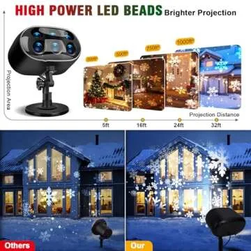 - Brighter & Larger Projection Area: Featuring advanced high-power LED lamp bead technology, the JMMXG projector provides clear images and an expansive projection area, illuminating larger spaces with bright and vibrant snowflake effects.