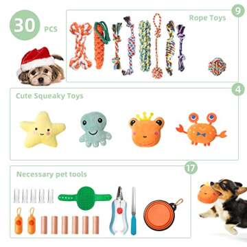 JMZDS&JL 30 Pack Dog Toys, Plush Teething Toys for Puppy, Interactive Squeaky Rope Toys for Small Dogs, Pet Essentials Gift Set