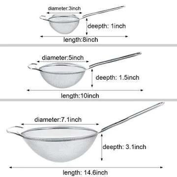 Jnnzzggu Fine Mesh Strainer,Set of 3 Stainless Steel Colander Wire Sieve Sifters with Long Handle for Tea,Flour,Pasta,Rice,Food,Kitchen,Oil (3+5+7.1)