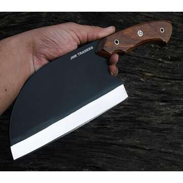 JNR Traders Cleaver Serbian Chef Knife 11.5" Handmade Full Tang Carbon Steel Cleaver for Meat Vegetables Cutting Chopping with Leather sheath 5510