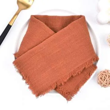 When stacked against competitors, the Joanlody Terracotta Cloth Napkins shine through with their unique handmade quality and rustic design. While many napkins are mass-produced and lack character, these napkins stand out due to their exquisite fringe detailing and high-quality cotton linen. Unlike heavier fabric options which can make setting the table cumbersome, these napkins are lightweight yet durable, perfect for any occasion, from buffet setups to elegant receptions. Additionally, their easy care instructions make them a hassle-free choice compared to other fabric options that require stricter cleaning methods.