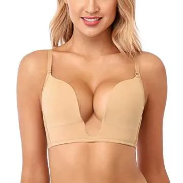 JOATEAY Women's Deep Plunge Bra Sexy Convertible Low Cut Wireless Light Padded Bra Cleavage Enhancer(Nude 34D)