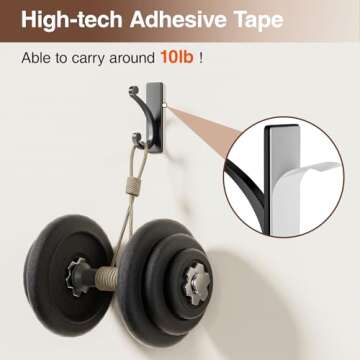 jockcaras Adhesive Wall Hook for Towel/Coat - Extra Sticky 10LB Stainless, Stick on Hanger for Bath or Shower, Matt Black 4-Pack