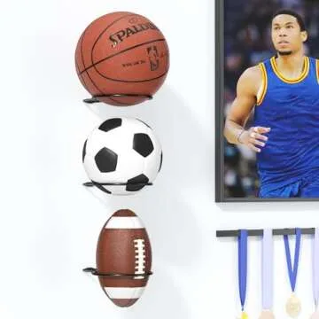 jockcaras Basketball Holder Wall Mount: 4 pcs Ball Wall Mount for Display, Ball Wall Storage Rack for Basketball, Soccer Ball, Volleyball, Football, Rugby, Ball Holder as Sports Room Decor