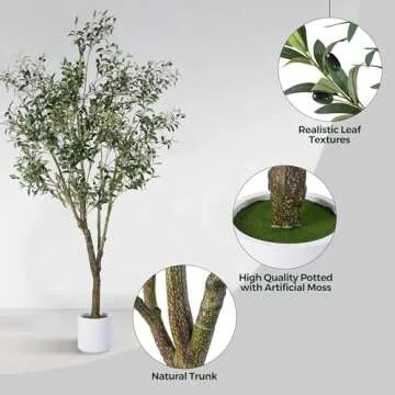 Jocoevol Artificial Olive Tree 7FT, Indoor Fake Silk Plant with Realistic Trunk, Leaves, Fruits and White Planter, Faux Potted Tree for Home Decor and Housewarming Gift, 1 Pack