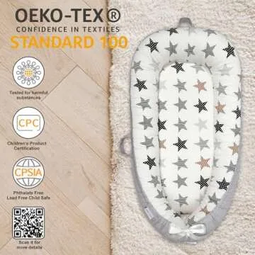 JOCUTE Baby Lounger for Newborn Cover - Newborn Lounger for 0-12 Months, Breathable & Portable Infant Lounger - Adjustable Cotton Soft Baby Floor Seat for Travel, Newborn Essentials- Star