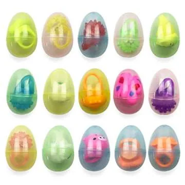 JoFAN 15 Pack LED Jelly Rings Easter Eggs - Fun Light Up Toys Inside for Kids