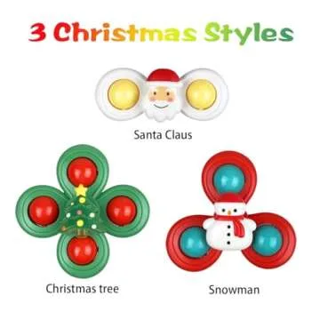 Jofan 3 Pack Christmas Suction Cup Spinner Toys for Baby Toddlers Kids Christmas Stocking Stuffers Gifts