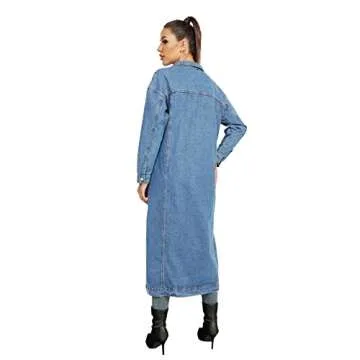 Jofemuho Womens Classic Jean Jacket Plus Size Loose Long Sleeve Button Down Denim Trench Coat Light Blue1 XL