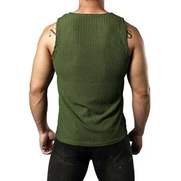 Show moreIntroducing the JOGAL Men's Mesh Fitted Sleeveless Muscle Tank Top, a stylish and functional addition to your wardrobe! This premium green tank top is designed for those who want to make a statement while enjoying ultimate comfort. Crafted from high-quality, breathable mesh material, this sexy fishnet vest offers a see-through design that highlights your physique, making it the ideal choice for various occasions such as casual outings, theme parties, or even intense workout sessions. Whether you're hitting the gym for yoga, lifting weights, or just enjoying the sunlight at a club, this tank top will keep you cool and comfortable.