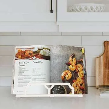 JOGREFUL Vintage Cookbook Stand Cast Iron, Decorative Metal Cookbook Recipe Holder for Bible, Easel, Textbooks, Magazine, Art, iPad, Kitchen Counter, Prayer Book Stand, 11.4L * 5.1W * 9.1H, White