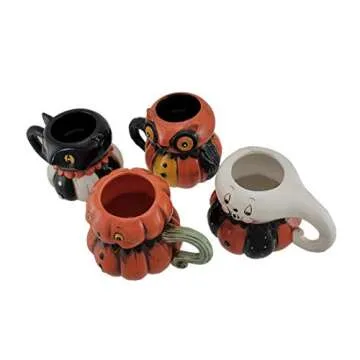 Meet your new whimsical companions—a mischievous cat, a wise owl, a grinning pumpkin, and a friendly ghost—all artfully rendered with a glossy hand-painted finish that enhances their enchanting appeal. These mugs are not just vessels for your favorite drinks; they are unique pieces of art that will light up your tableware collection and elevate your Halloween decor.