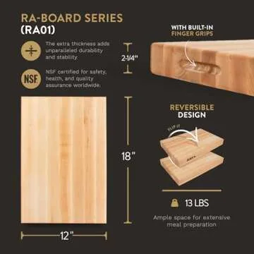 John Boos Block RA-Board Large Reversible Wood Cutting Board, 18"x12"x2.25", Maple