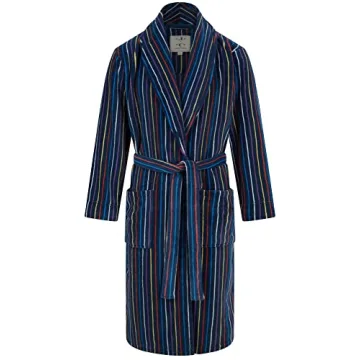 Show moreStep into the embrace of luxury with the John Christian Men's Warm Fleece Robe, designed for those who value both comfort and style. This plush robe, crafted from premium quality super soft fleece, promises to envelop you in warmth every time you slip it on. Its stylish navy blue fabric, adorned with multicolored stripes, effortlessly combines modern aesthetics with timeless sophistication. The thoughtful design includes a generous deep collar that wraps snugly around your neck, keeping out icy drafts and ensuring you start your day on a cozy note. Perfect as the first thing you put on in the morning or a relaxing layer for lounging at home, this robe redefines comfort and luxury.