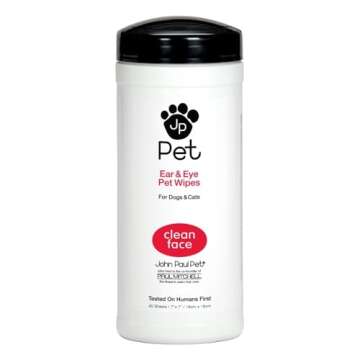 John Paul Pet Ear & Eye Pet Wipes for Dogs and Cats, 2 in 1, Safe, Clean Face, Infused with Aloe, pH Balanced, Unscented, 45 Count