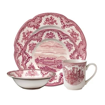 Discover the enchanting Johnson Brothers Old Britain Castle Dinnerware Set, a stunning testament to classic British craftsmanship. Made from fine earthenware, this beautifully designed dinnerware set comprises four exquisite pieces, each depicting an intricate 18th-century landscape featuring a charming castle. Not only does each piece showcase a unique castle with its name and date inscribed below, but the delightful shades of pink and burgundy create a captivating aesthetic, making it an...